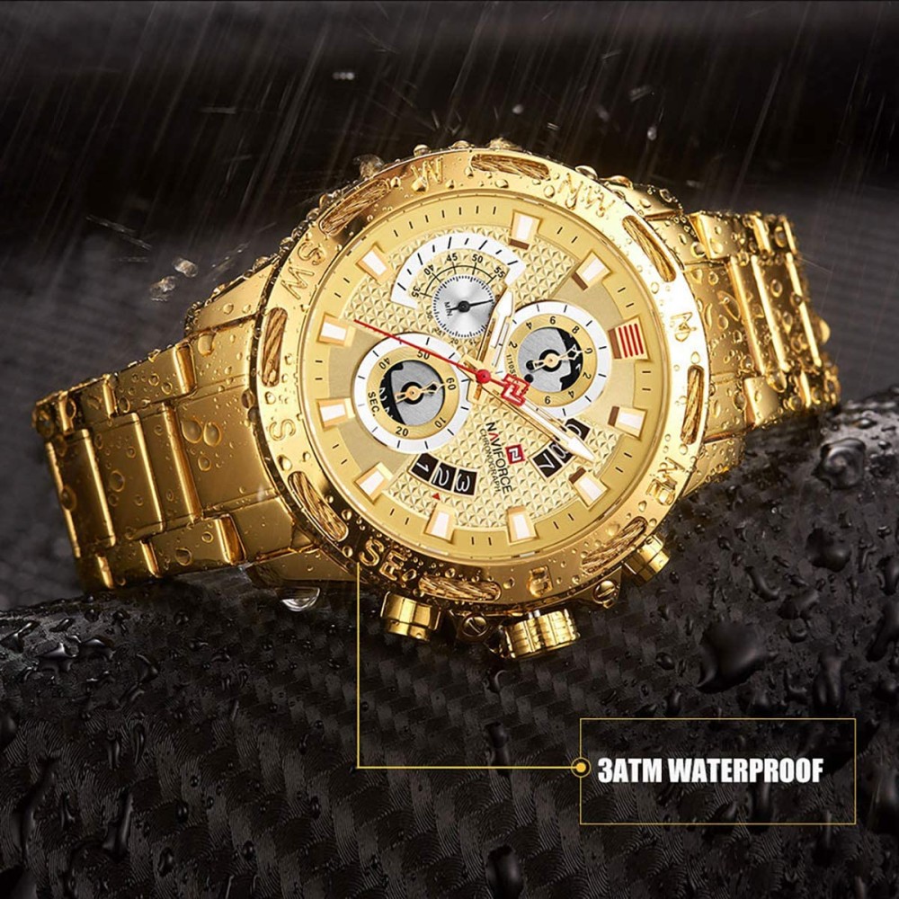 NAVIFORCE Golden Stainless Steel Chronograph Watch For Men - Golden